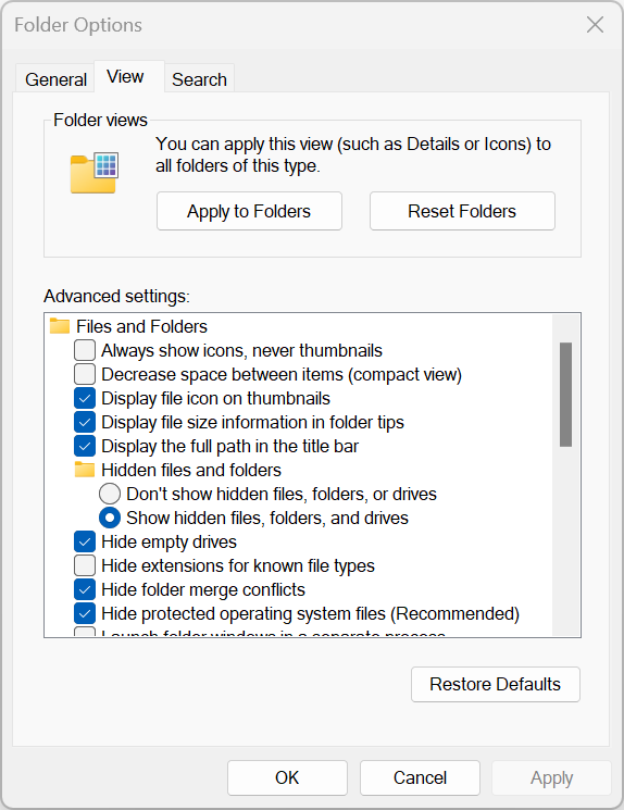 Chọn tab View, tick vào ô Display the full path in the title bar.